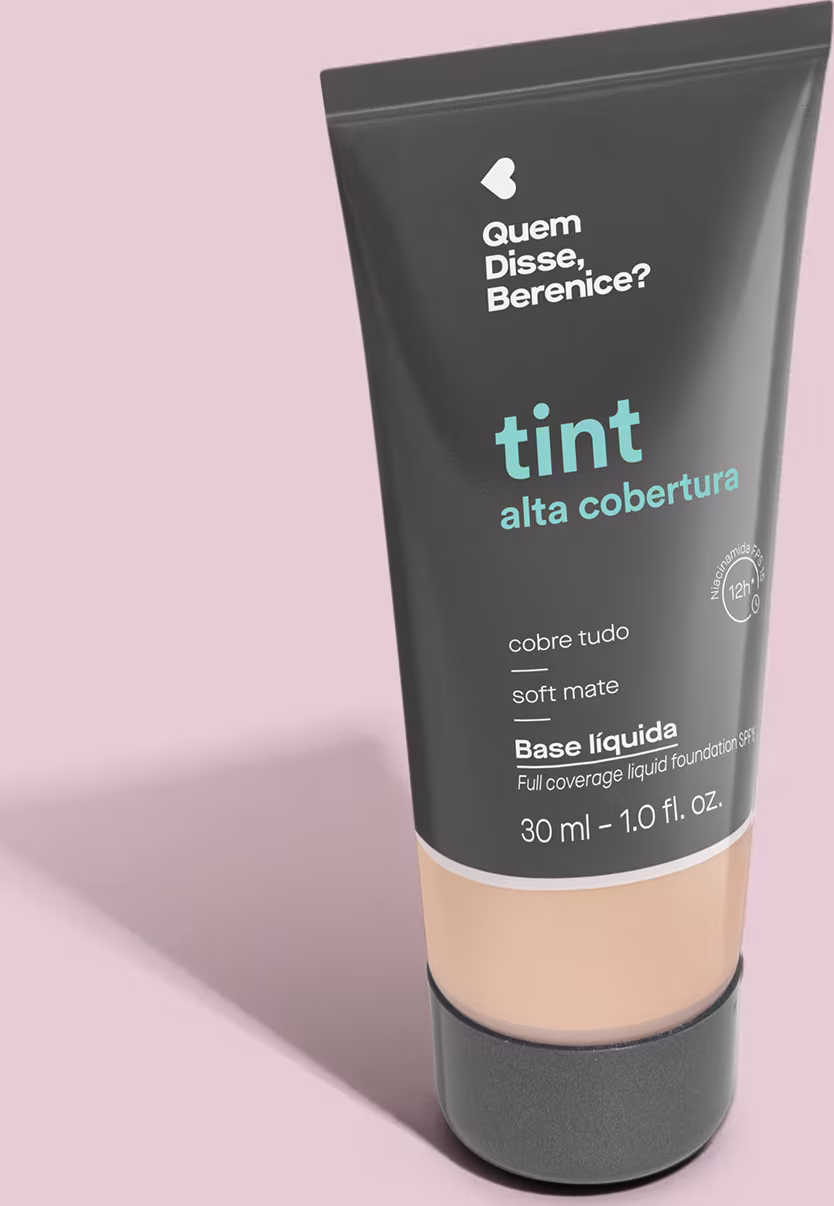 A Base Tint Alta Cobertura é aquela que cobre tudo, sabe? Com textura fluida, proporciona alta cobertura com apenas uma fina camada, não craquela e permite construção de camadas com acabamento soft mate, que não resseca sua pele.