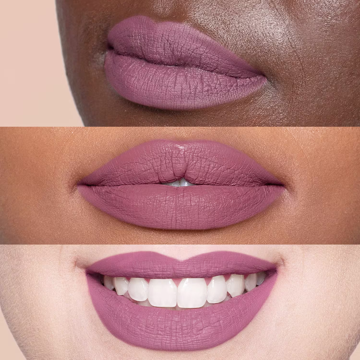 Batom com efeito super mate de textura fina, bem pigmentado e ultra confortável para lábios aveludados. Ver mais ❯