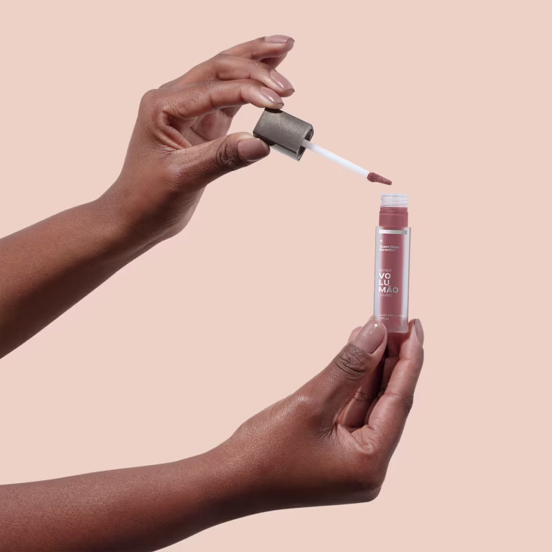 Com uso contínuo, este batom auxilia no preenchimento labial e na redução de vincos e rugas na área labial. Fora isso, o Batom Líquido Volumão também tem: