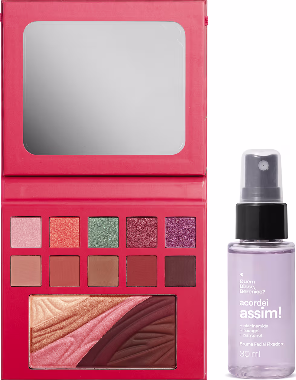 Um brinde à beleza com Paleta De Maquiagem Multifuncional Dose De Cor , com 10 sombras versáteis e 5 cores multifuncionais que entregam diferentes acabamentos, do mate ao brilho. Com alta pigmentação e espelho incluso, ela facilita o look em qualquer lugar, garantindo que sua dose de cor seja sempre especial e cheia de atitude. É o item ideal para quem ama inventar moda e destacar o olhar com combinações únicas e intensas.