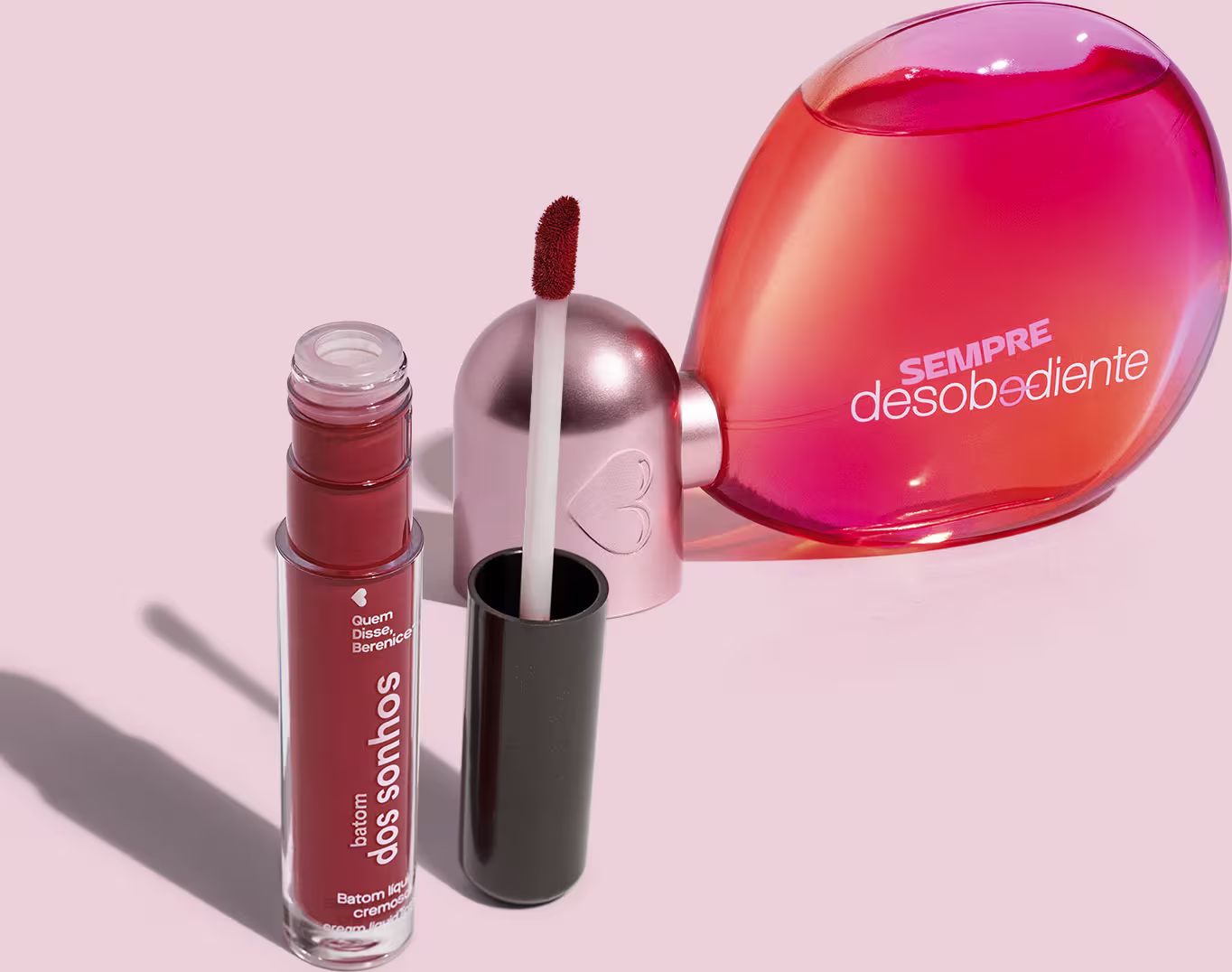 Este combo une a ousadia de uma fragrância de chiclete com a sofisticação de um batom marrom que é tendência. A combinação perfeita para quem deseja expressar liberdade e estilo em todos os momentos, garantindo uma presença marcante e lábios hidratados com cor intensa.
