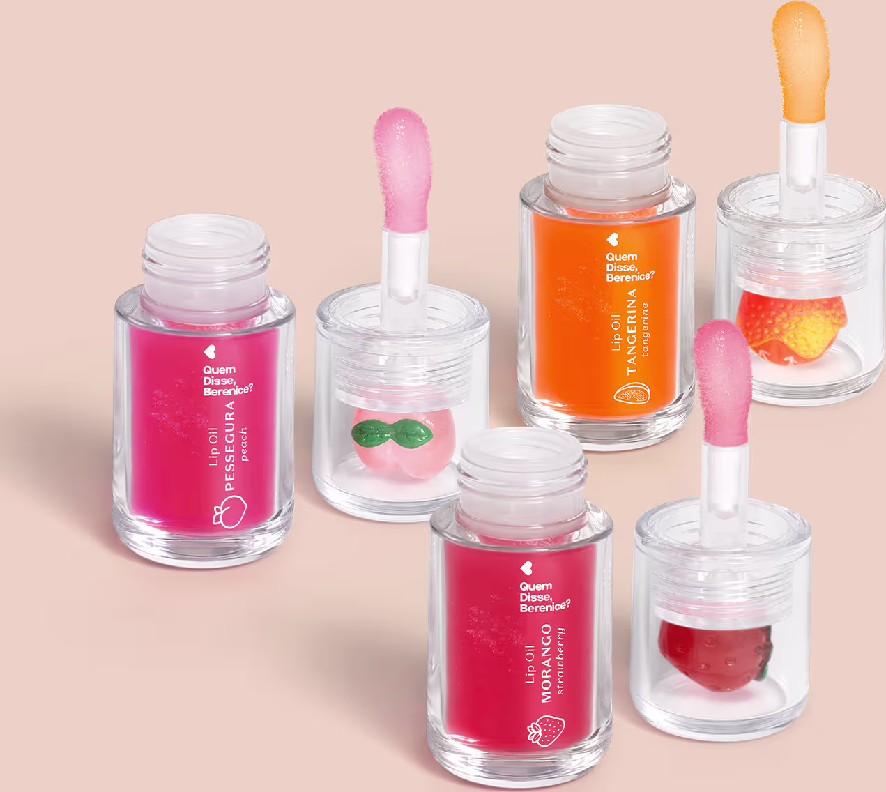 A collab de sucesso voltou! A linha Cuide-se Bem Feira + Quem Disse, Berenice? traz o Combo Vitaminada, unindo o frescor das frutas com o acabamento impecável que você ama. Este trio de Lip Oils entrega um charmoso aplicador com ilustração da fruta, garantindo lábios hidratados e cheios de vida em qualquer ocasião. Confira cada brilho labial com cheiro de fruta: