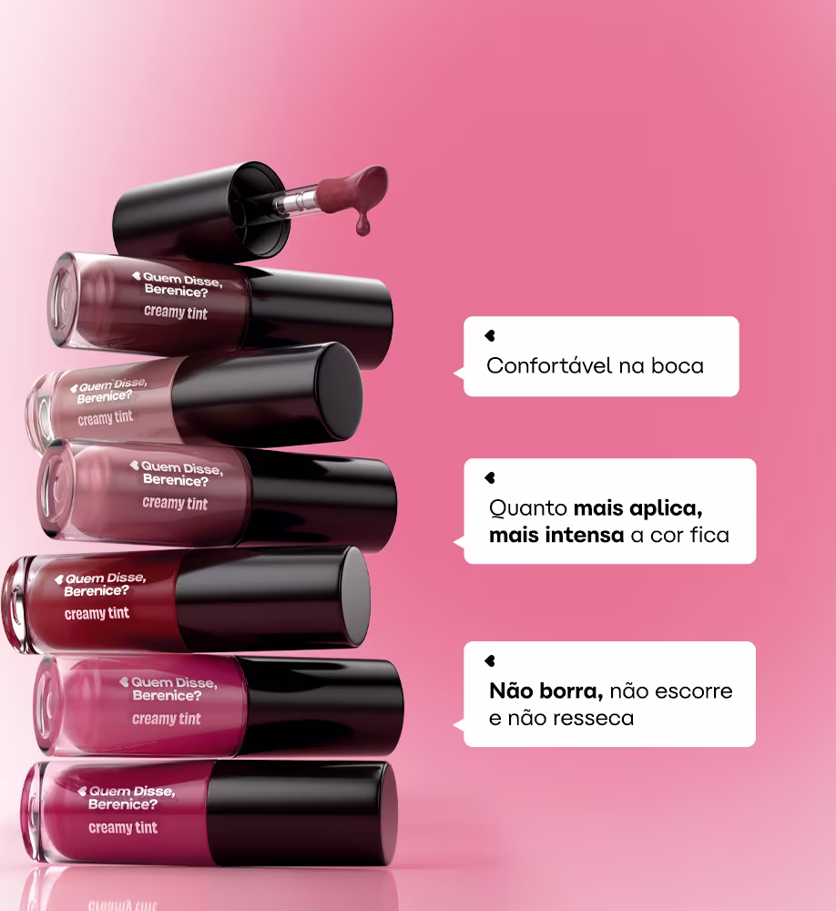 Quem disse que creamy não pode ser tint? O conforto do creamy que, ao sair, vira um tint mara nos lábios!